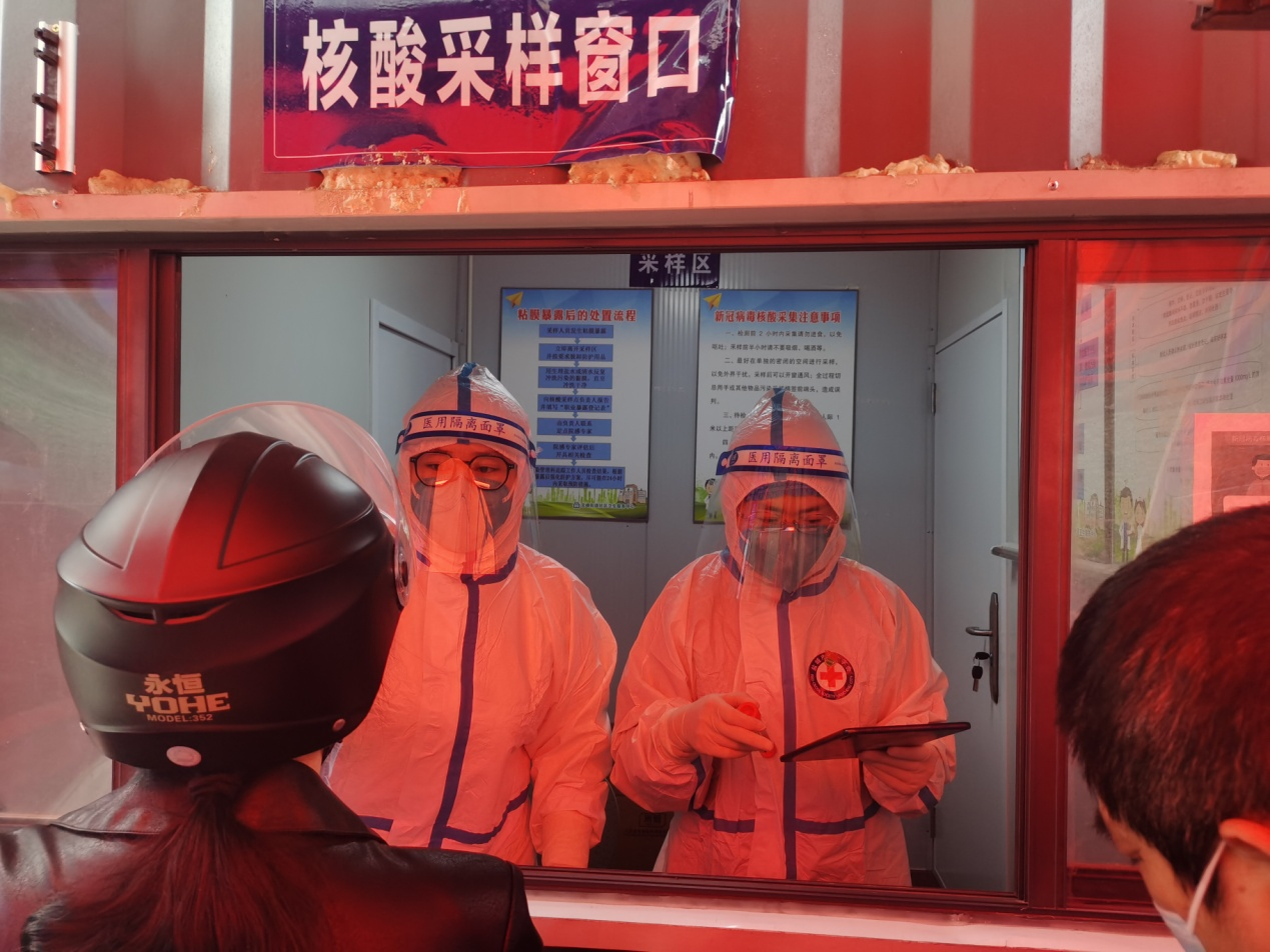 “请戴好口罩,保持一米间距”“请提前打开采样码”“我帮您注册‘我的盐城’APP,里面有核酸采样码”“您把采样码截屏,下次就直接可以看到了”“您可以拿着身份证到居委会打印一张采样码” …… 核酸采样现场,市红十字会党员干部总是这样耐心又细致地做好服务。