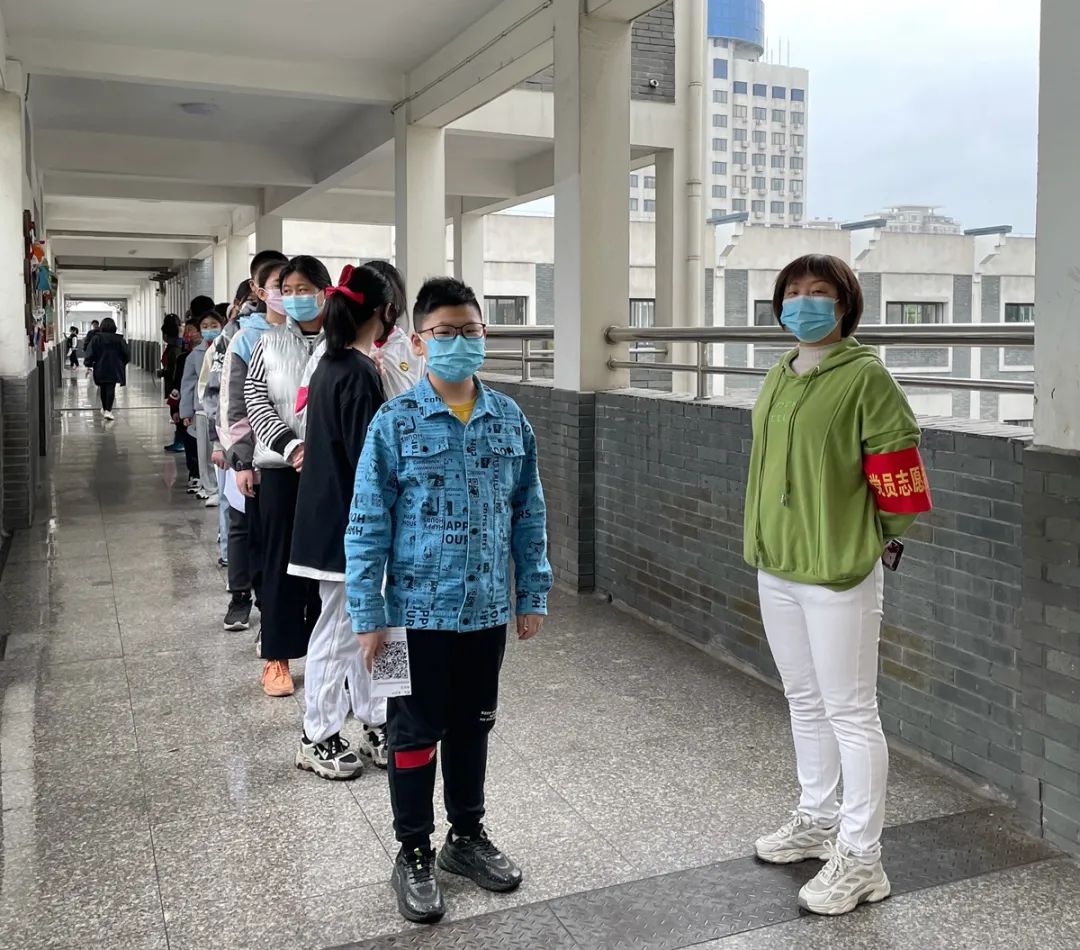 有的党员志愿者很早就来到学校,检查各项疫情防控措施,认真排查扬城码,指导学生有序测温进入校园。有的党员志愿者在上、放学时段主动到校门口劝导接送学生的家长戴好口罩,注意防护。有的党员志愿者利用课间休息时间来到学生活动的区域,提醒学生戴好口罩,保持距离,守护学生安全。有的党员志愿者主动帮扶疫情期间缺课的学生,关心他们的学习生活,保证这些孩子“停课有指导,缺课有辅导”。 有的党员志愿者在放学后主动来到学校的风雨廊,陪护在这里等候家长来接的学生。有的党员志愿者主动参与各项检测工作,组织师生有序进行扫码、登记、排队,与疫情防控的医护人员同频共振、共同抗疫。有的党员志愿者默默地在幕后坚守岗位,进行防控流程制定、数据收集等细微而重要的工作,有时甚至到深夜还在汇总、整理当天的防疫数据。