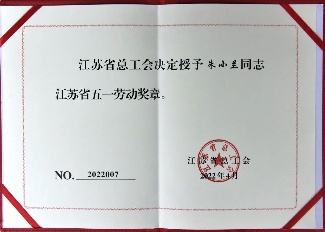 [镇江市]劳动楷模市红十字妇幼保健院朱小兰同志荣获江苏省“五一劳动奖章”