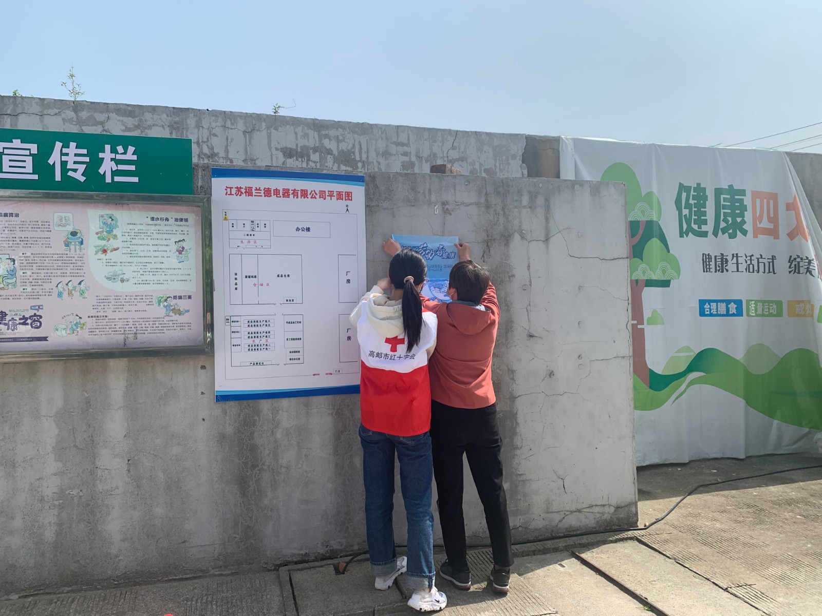 近日,高邮市周山镇红十字会采取多种形式深入宣传贯彻《职业病防治法》,进一步推动用人单位积极落实职业病防治主体责任,提高用人单位和劳动者的职业卫生法律意识,切实保障广大劳动者职业健康权益。