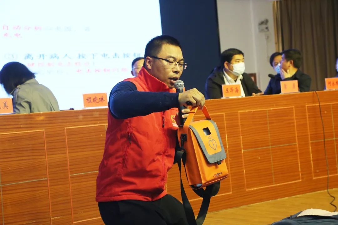“救在身边•校园守护”行动,是在全市各级各类学校联合开展应急救护知识技能普及培训。着力提升广大师生健康素养、防灾避险和自救互救技能,切实保护好师生生命安全和身体健康。培训由省红十字应急救护师资陈晓军主讲。现场培训讲解红十字的起源、基础心肺复苏、体外自动除颤仪的使用、气道异物梗阻急救等应急救护知识。