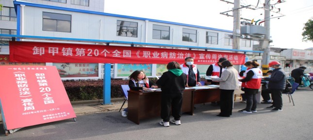 今年4月25日至5月1日是我国第20个《职业病防治法》宣传周。宣传周期间,高邮市卸甲镇职合镇红十字会、卸甲中心卫生院、镇食安办等部门开展以“一切为了劳动者健康”为主题宣传活动,营造宣传浓厚氛围。