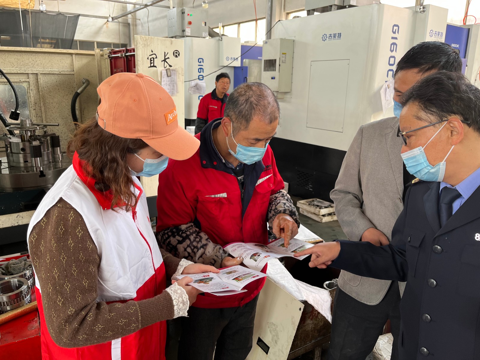 活动期间,红十字会志愿者通过悬挂横幅、发放宣传资料等方式,开展了群众参与度高、传播效果好的宣传活动。同时,邀请镇防保所副所长赵显忠现场向企业员工广泛宣传用人单位防治责任、劳动者职业健康权益,深入解读职业健康检查、职业卫生基础建设工作等相关法律知识和政策规定,以通俗易懂的语言向员工讲解什么是职业病、职业病的危害及其预防措施等,并对大家关心的职业健康问题进行耐心细致地解答。