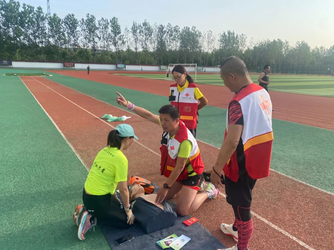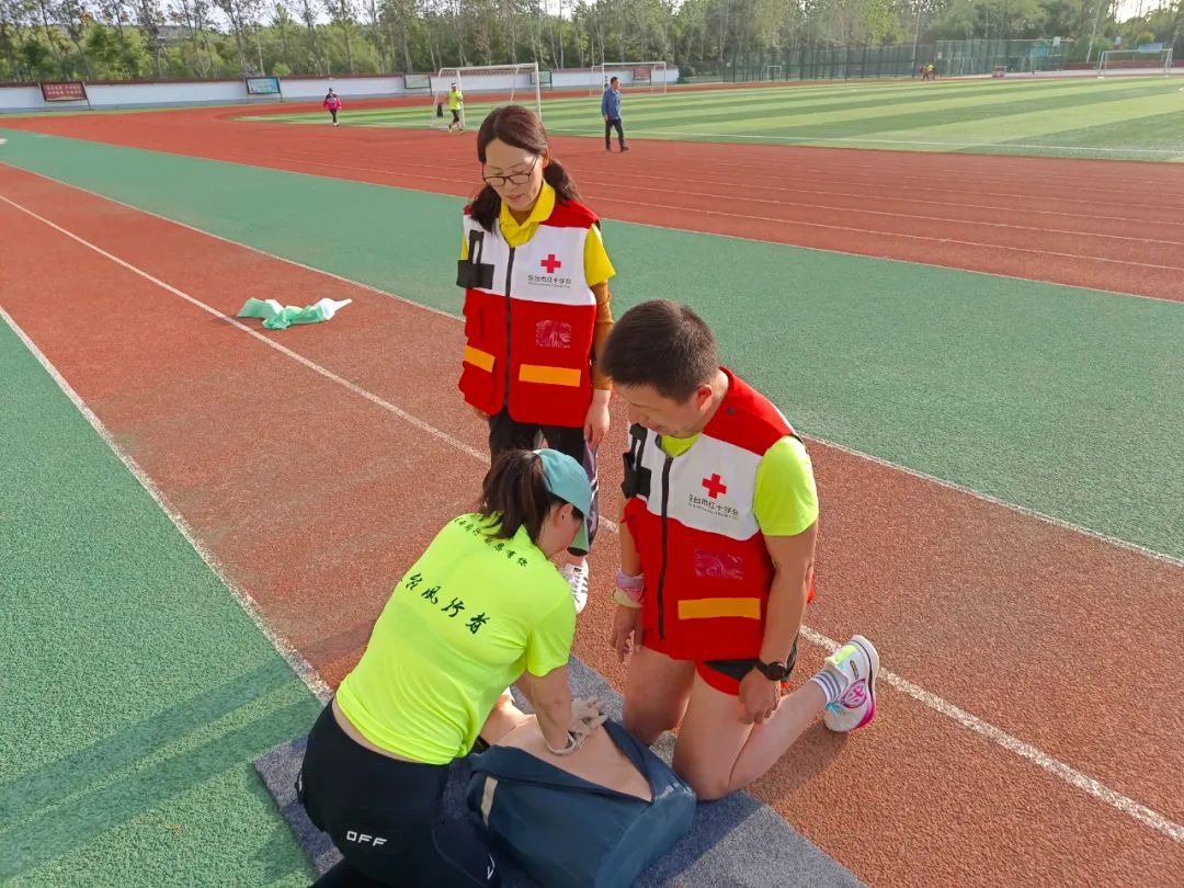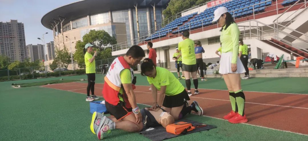 现场跑友和晨练的市民们认真听讲,积极动手练习心肺复苏(CPR)及自动体外除颤仪(AED),有效增强了跑友应急处置、自救互救能力。