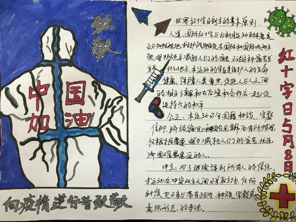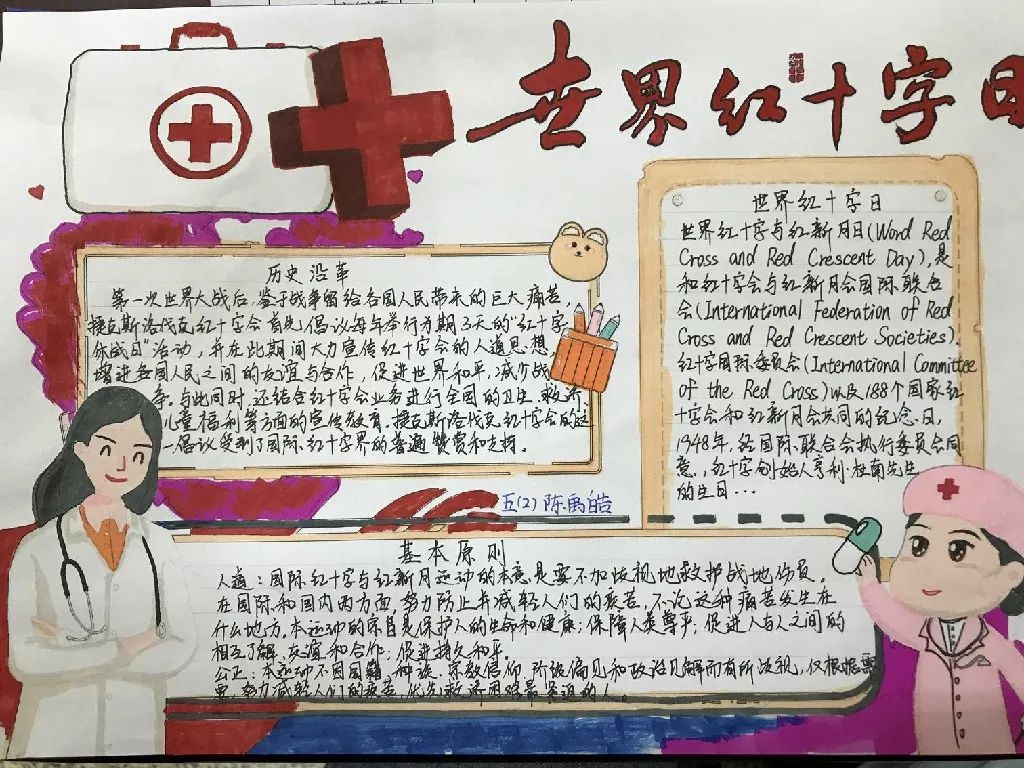 队员们用自己的智慧和巧手,制作出一张张精美的手抄报。作品主题突出,版面设计新颖独特,图文并茂地介绍了红十字知识和红十字精神,把红十字会的宗旨——保护人的生命和健康,发扬人道主义精神,促进和平进步事业诠释得淋漓精致。