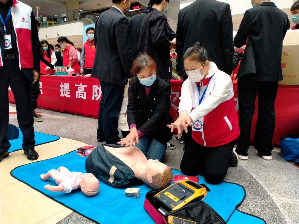今年5月12日是第14个“全国防灾减灾日”,亭湖区红十字会参加盐城市减灾办组织开展的大型集中宣传教育活动,现场为市民分发应急救护知识手册,普及应急救护技能,指导广大市民体验心肺复苏术、海姆立克急救法、紧急包扎术、AED的使用等自救互救技能。