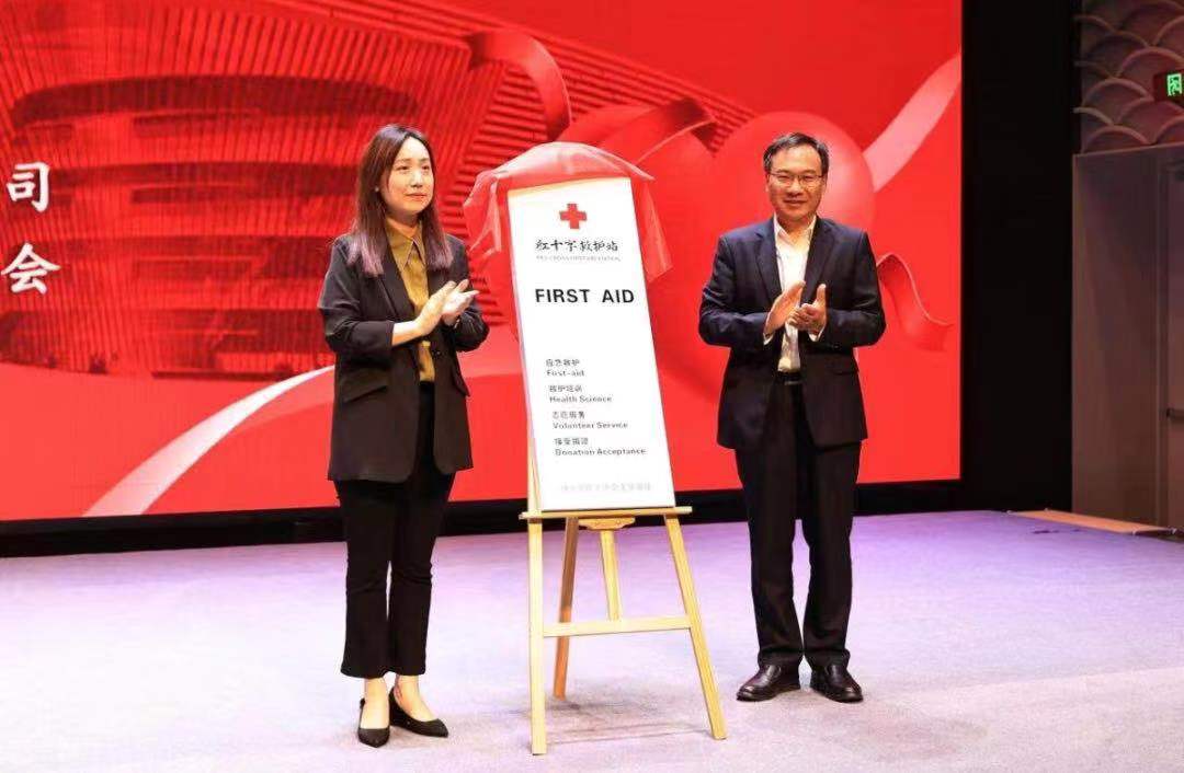 市红十字会向运河大剧院赠送了一批救护物资。市红十字会党组书记、常务副会长张宝马,市运河文投集团党委委员、副总经理,扬州市文化投资管理有限公司董事长范小平共同为中国扬州运河大剧院红十字救护站揭牌。