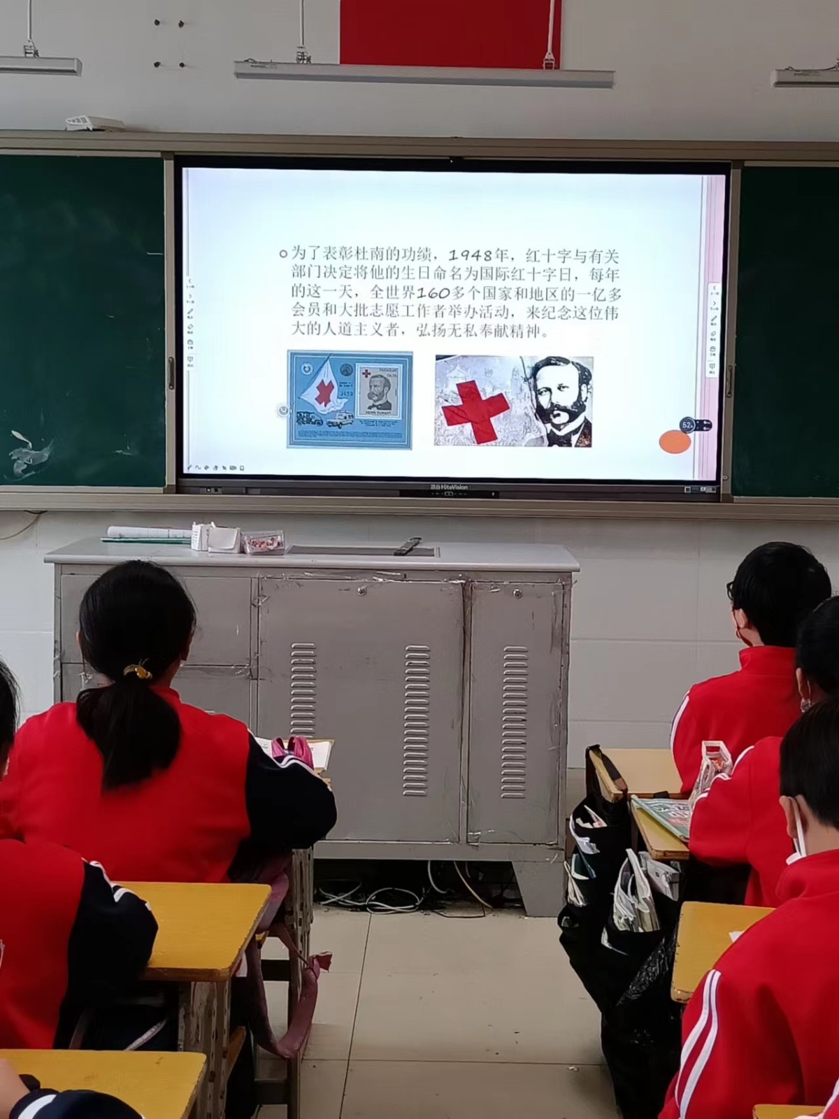 宣传“红十字”精神 。活动期间,学校制定宣传标语电子屏,宣传展示红十字会知识内容,引导学生加强了解红十字的起源及其在社会中的重要作用,更进一步理解“人道、博爱、奉献”的红会精神。