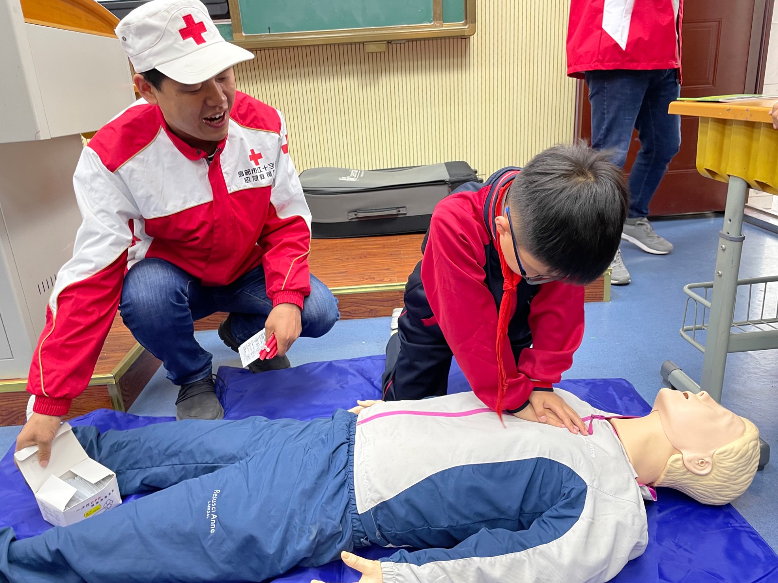 随后,应急救援队走进省红十字示范校第一小学宝塔校区开展“生命健康”讲堂,向学生们科普了心肺复苏操作、地震避险防护及红十字运动知识等并邀请学生上台体验、模拟操作流程。