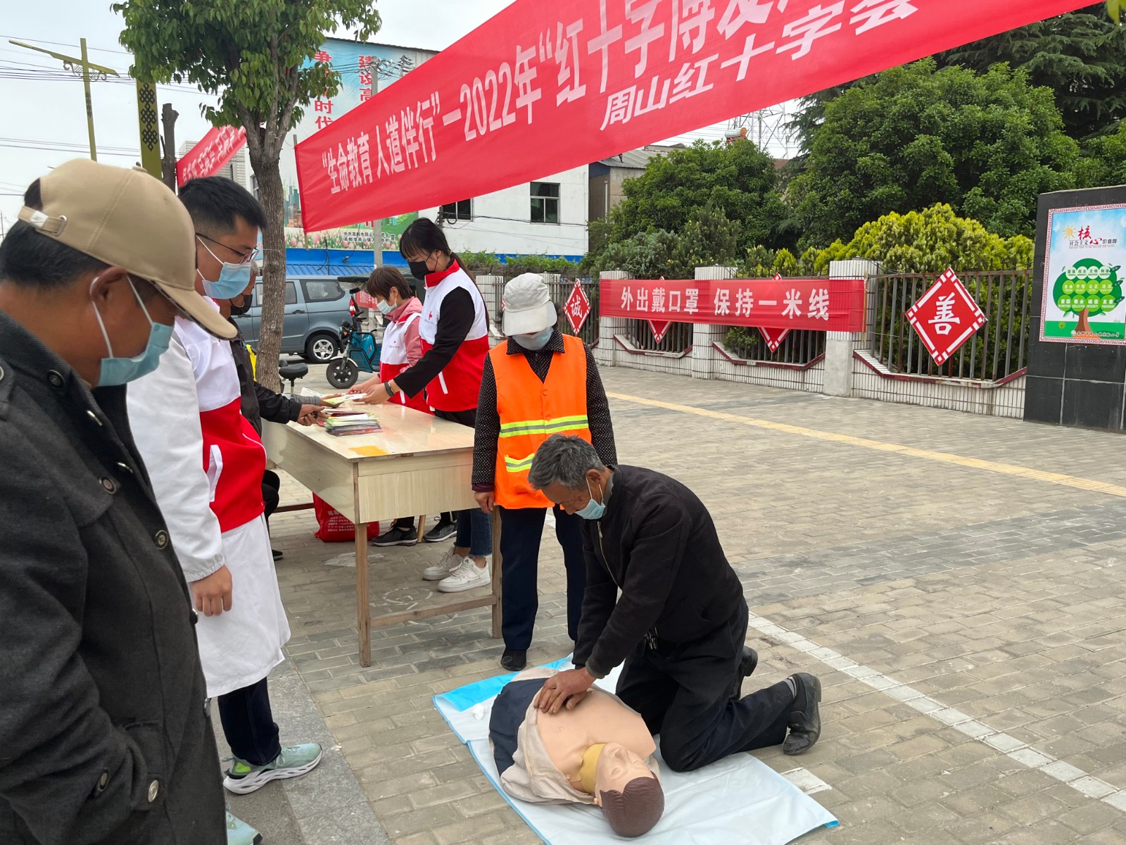 今年5月8日是第75个“世界红十字日”。为培育和践行社会主义核心价值观,在全社会倡导健康、科学、文明的生命理念,近期,周山镇红十字会围绕“生命教育,人道伴行”主题,开展“红十字博爱周”活动。