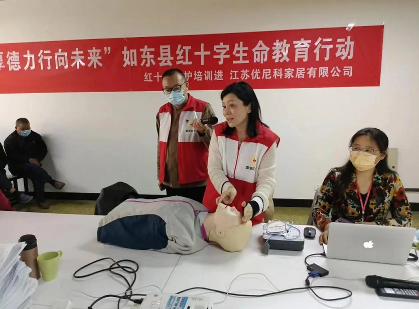 在第14个“防灾减灾日”来临之际,如东县红十字会启动应急救护线下取证培训,组织师资志愿者走进江苏优尼科家居有限公司,开展“救在身边”生命教育行动。
