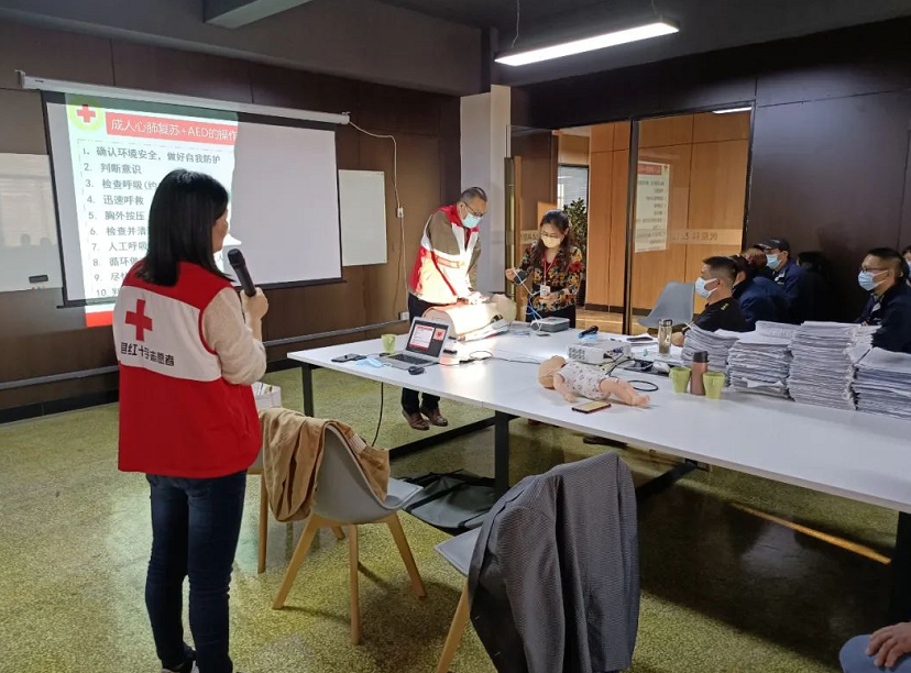 培训主要传授了红十字运动知识、心肺复苏+AED、气道异物梗阻的急救技术,普及了防疫相关知识。在做好防疫措施的前提下,公司行政管理人员和一线职工各有近40人参加了培训。