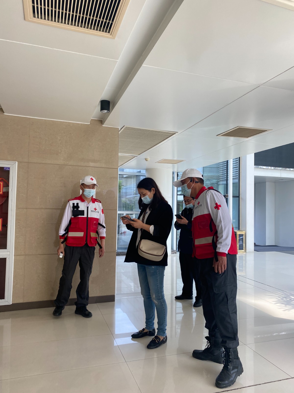 志愿者们服从分配,火速行动,积极投身战“疫”一线。“提前打开健康码,不要怕麻烦,这是为了大家的安全。”在市政府二楼平台,如皋市红十字会赈济救援队4名成员分成两队,分别驻守在东西核酸采样点入口处,耐心地为进入采样点的人员查验健康码、测体温,提醒大家戴好口罩。
