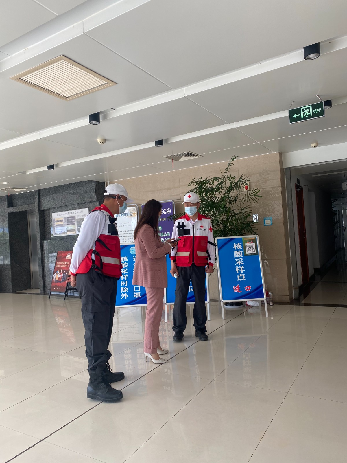 5月14日全民核酸检测,如皋市红十字会赈济救援队成员积极响应号召,报名参加疫情防控志愿服务活动。