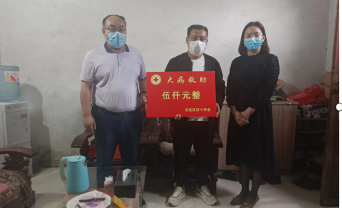 人道公益,爱心传播助力特殊困难群众。区红十字会于“5·8人道公益日”,依托腾讯公益平台上线“徐云白血病患儿救助”“徐云博爱家庭箱” 2个项目,通过网络众筹方式募集公益资金,召区红十字系统全体人员、志愿者及热心群众进行传播动员,让红十字精神与微公益、微募捐理念春风化雨般深入群众心中。以江苏美平方装饰公司、徐州计成文化传媒有限公司及区青商会各成员为代表的众多爱心企业及爱心人士积极响应,2个项目均完成既定捐款目标,所有捐款将定向帮助项目主体中的困难群众。同时,为有效纾解区内因疫情影响困难群众的生活压力,扎实开展好博爱系列救助和“博爱送万家”常态化工作,区红十字会走访慰问全区以特殊困难群体为主的困难群众50户,每户送去慰问金1000元,传递红十字积极能量,为困难家庭送去“稳稳的幸福”。在汉风街道,区红十字会和爱心企业升辉集团代表一起慰问了重症困难患者乔先生,为他送上募集的爱心企业定向捐款5万元和区红十字会大病救助款5千元。爱心企业表示,乔先生曾在升辉集团工作十年,现虽已离职,但罹患重大疾病、遭逢人生难关,升辉集团不能忘记曾经和公司共同奋斗的任何员工。同时,升辉集团积极响应“红十字博爱周”的号召,通过对重症群众的帮扶,也在实际中践行“人道救助+生命教育”的活动精神,希望以此呼吁更多爱心企业、爱心人士参与到对患病困难群众的救助中来。