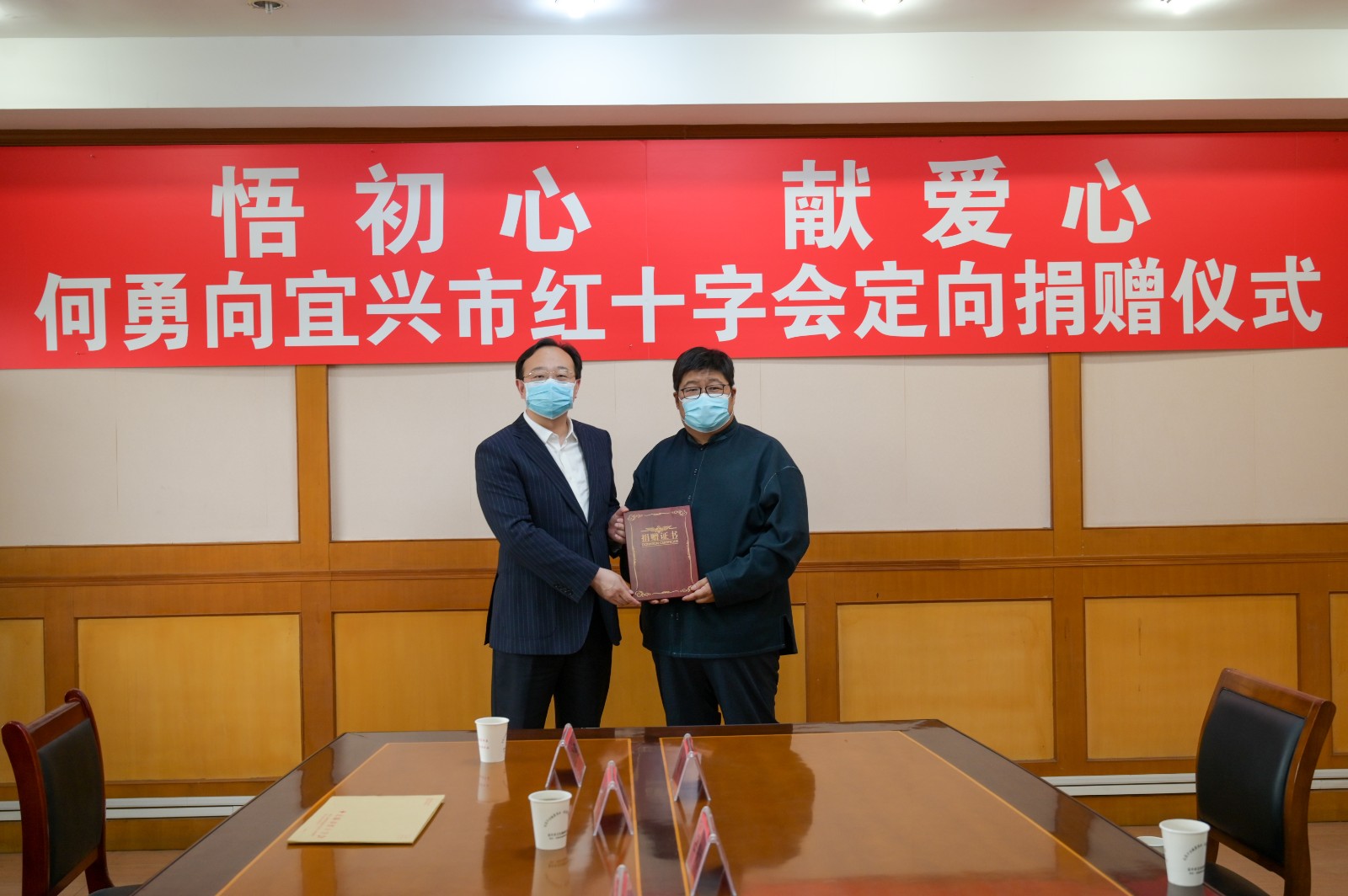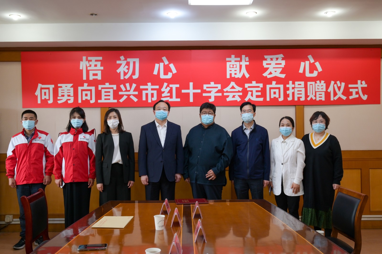 践行初心,以艺抗疫。5月10日,宜兴市红十字会举行“悟初心 献爱心”何勇向宜兴市红十字会定向捐赠仪式。宜兴市人民政府副市长张毅,市文联主席夏侯岭,市红十字会常务副会长李莉,无锡市书协副主席、宜兴市文联副主席何勇先生出席仪式。