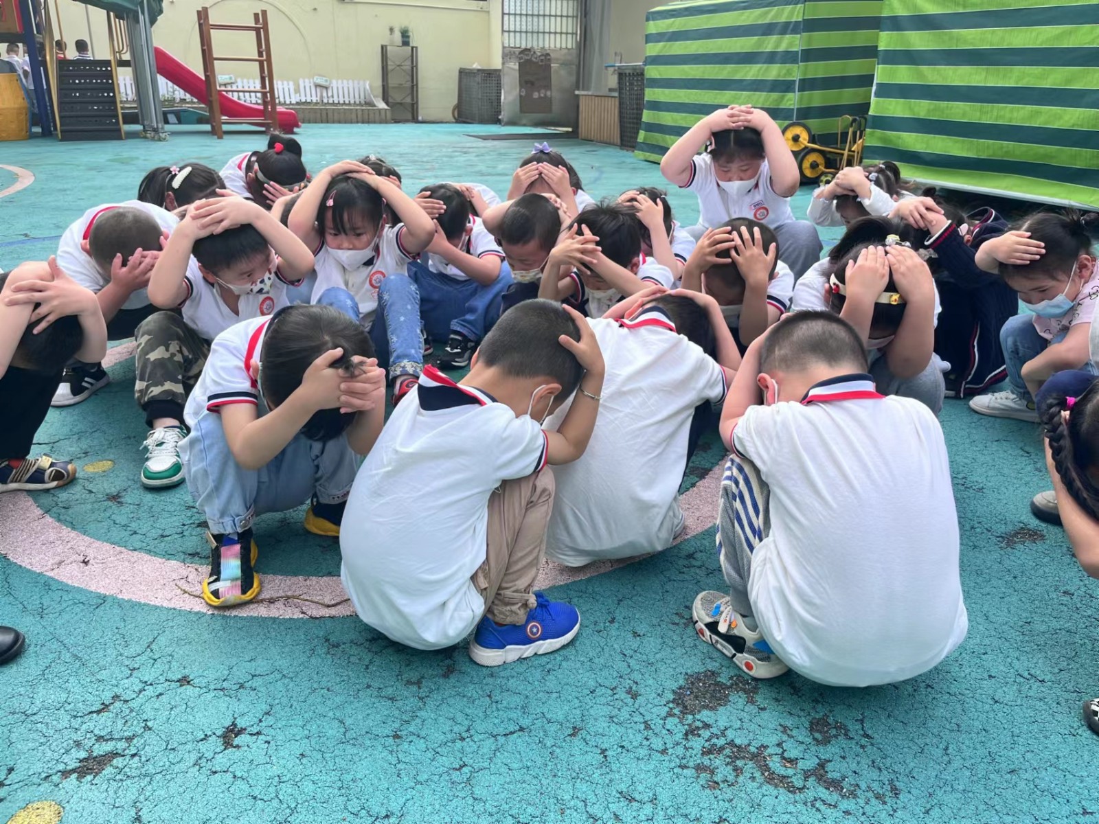 上午九时,宣传教育活动以地震科普主题班会的形式正式开始,老师们带领各年级各班的幼儿共同学习“地震是怎么一回事”、“地震来了怎么办”等各种“防震减灾”和“自救护救”知识,班会后进行了实操演练。演练过程中,全园师生相互配合,井然有序,短短2分钟时间,师生全部按照预定的疏散路线撤离到安全地带,达到了预期的演练效果。
