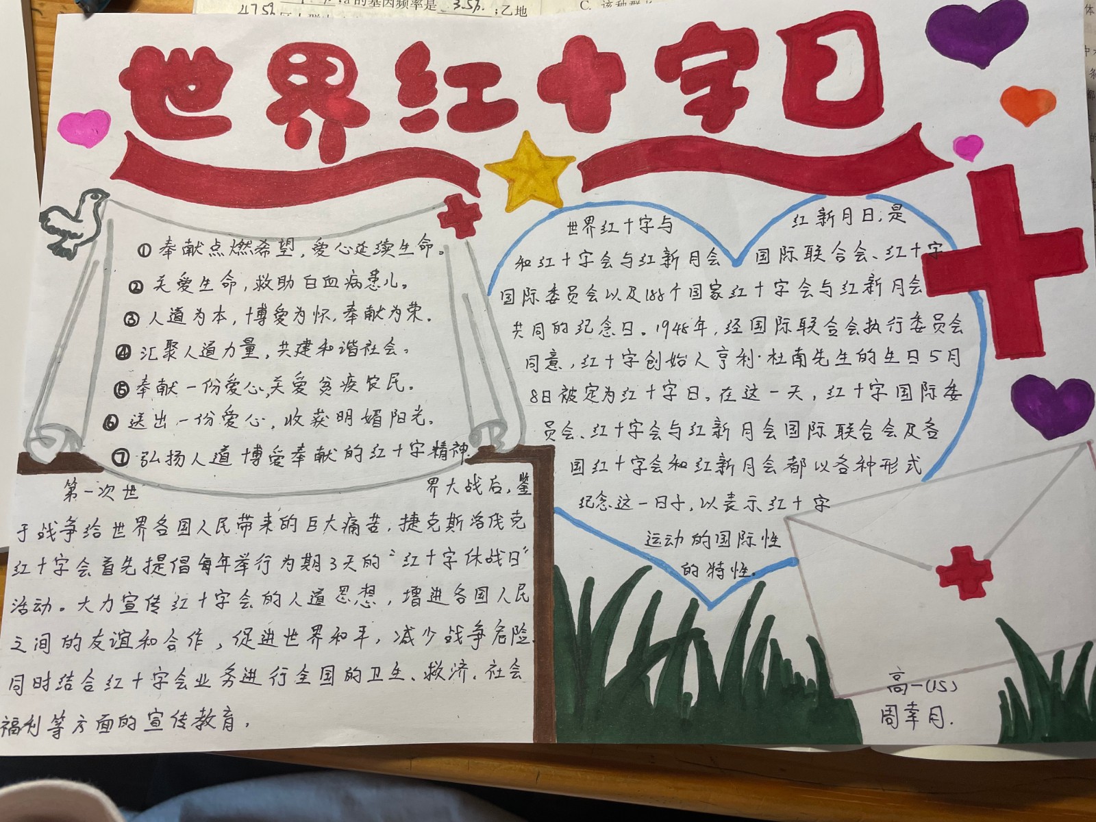 同学们精心绘制的手抄报更加精彩绝伦,生动展示出了不同主题和风格的红十字元素。同学们在准备、制作的过程中也逐步了解和接受红十字组织的悠久历史和发展过程,深刻体会人道事业的光辉历程。