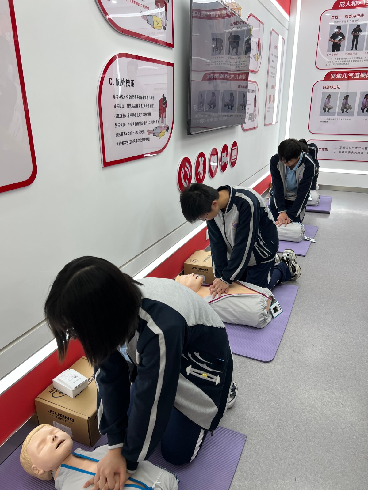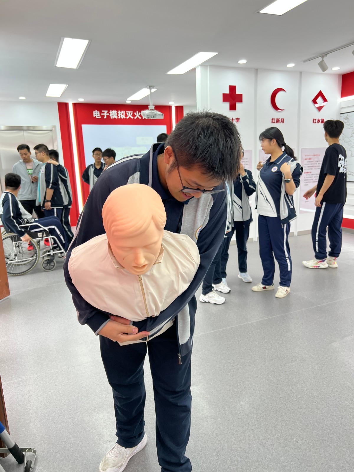 充分利用学校新建的生命体验馆,分批对153人次学生进行心肺复苏和气道异物梗阻急救实操练习;分批组织534人到生命体验馆进行消防逃生演练和防踩踏实景体验;全校师生积极参与“人道万人捐”活动,共筹得善款48717.6元。