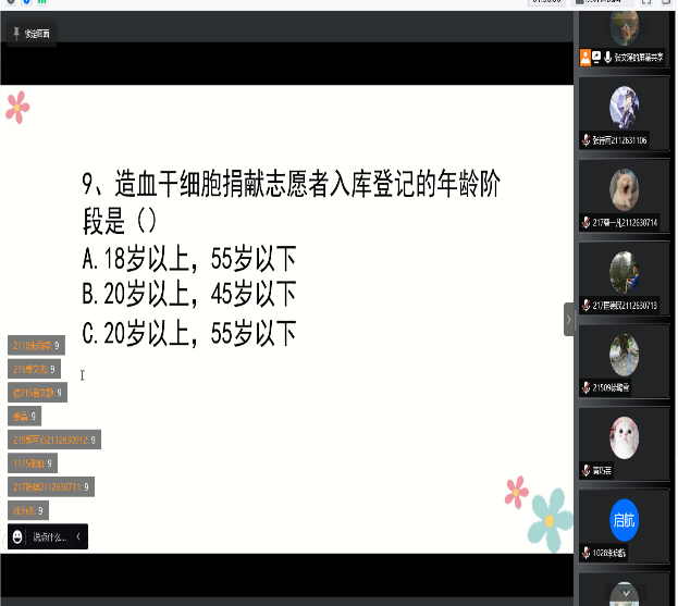 讲座结束后,线上随即展开了知识竞赛答题活动,同学们踊跃参与,积极做答,使活动的充满了竞争性和趣味性,在寓教于乐中让同学们对造血干细胞有了更加全面的了解。