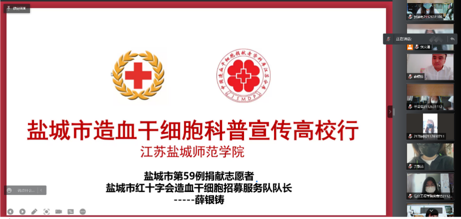 “五八”红十字博爱周期间,我市造血干细胞捐献服务队队长薛银铸为盐城师范学院信息工程学院100多名大学生开展红十字主题讲座。