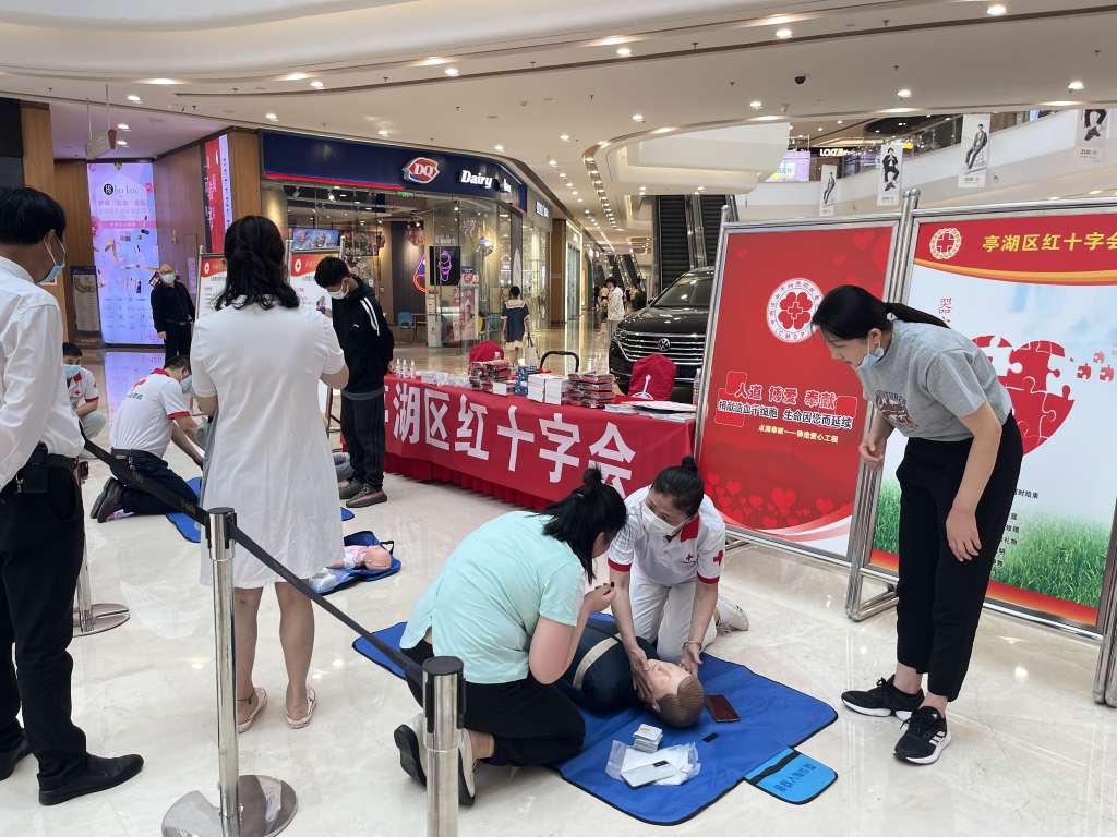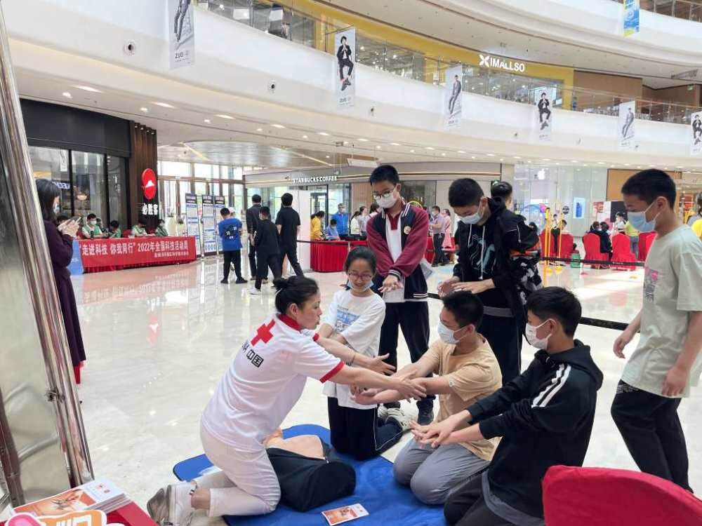 5月22日,“2022年全国科技活动周”亭湖区主场活动举行,亭湖区红十字会在活动现场开展“三救”“三献”工作宣传,为市民分发应急救护知识手册,普及应急救护技能,指导广大市民体验心肺复苏术、海姆立克急救法、紧急包扎术、AED的使用等自救互救技能。