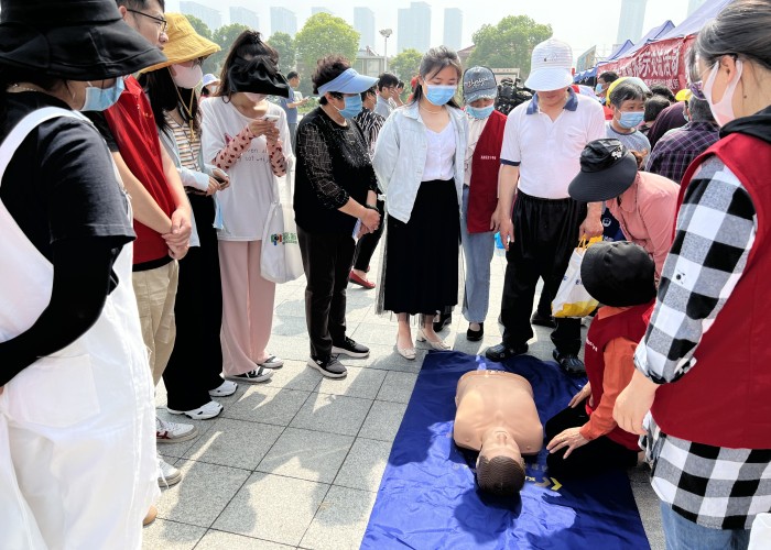 活动中,志愿者指导居民如何进行心肺复苏,并耐心纠正施救过程中的不当之处,形象生动的讲解让社区居民受益匪浅。