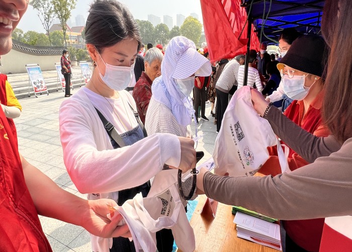 活动现场,志愿者们在向广大群众宣传新《中华人民共和国红十字会法》的同时,还为现场群众发放“红十字急救小常识”和“器官捐献知识”的宣传资料,普及应急救护、无偿献血、健康知识等,免费为群众测血压。