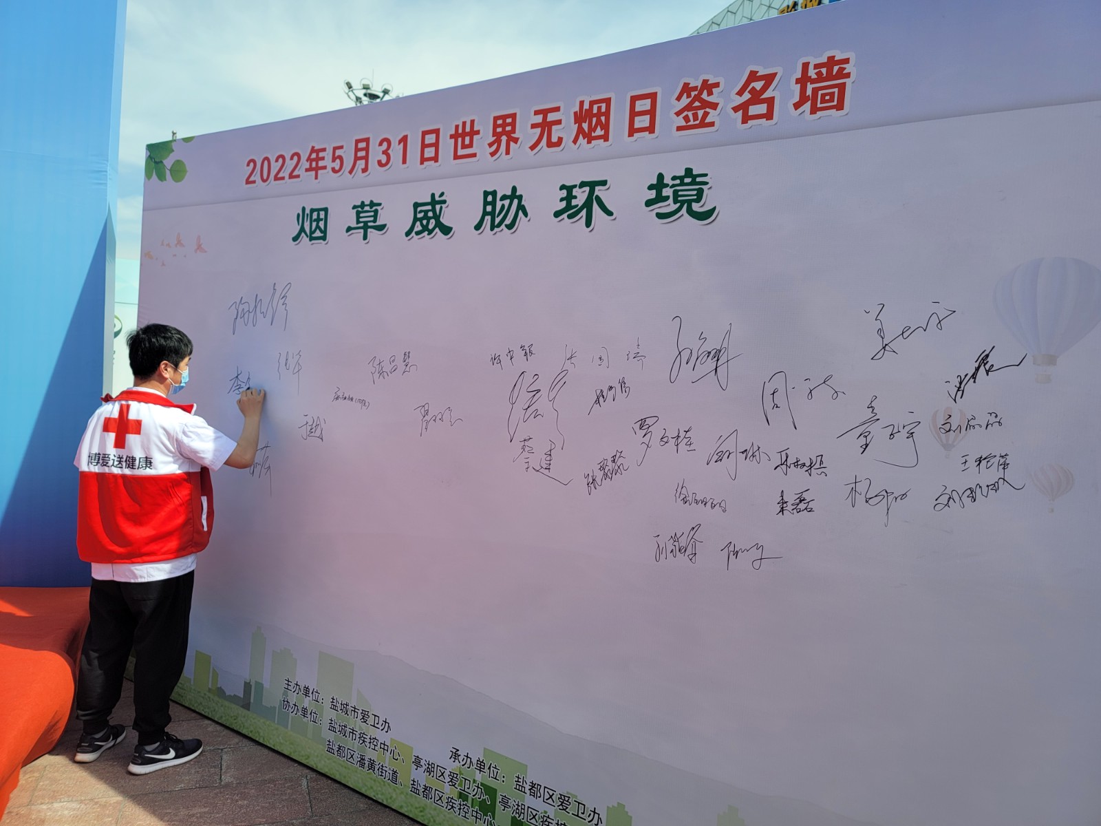 今年5月31日是第35个世界无烟日。为贯彻落实《健康中国行动(2019-2030年)》控烟行动有关要求,有效提升人民群众烟草危害健康知识水平,盐城市红十字会携手市第一人民医院参在万达广场举行世界无烟日大型广场宣传活动。