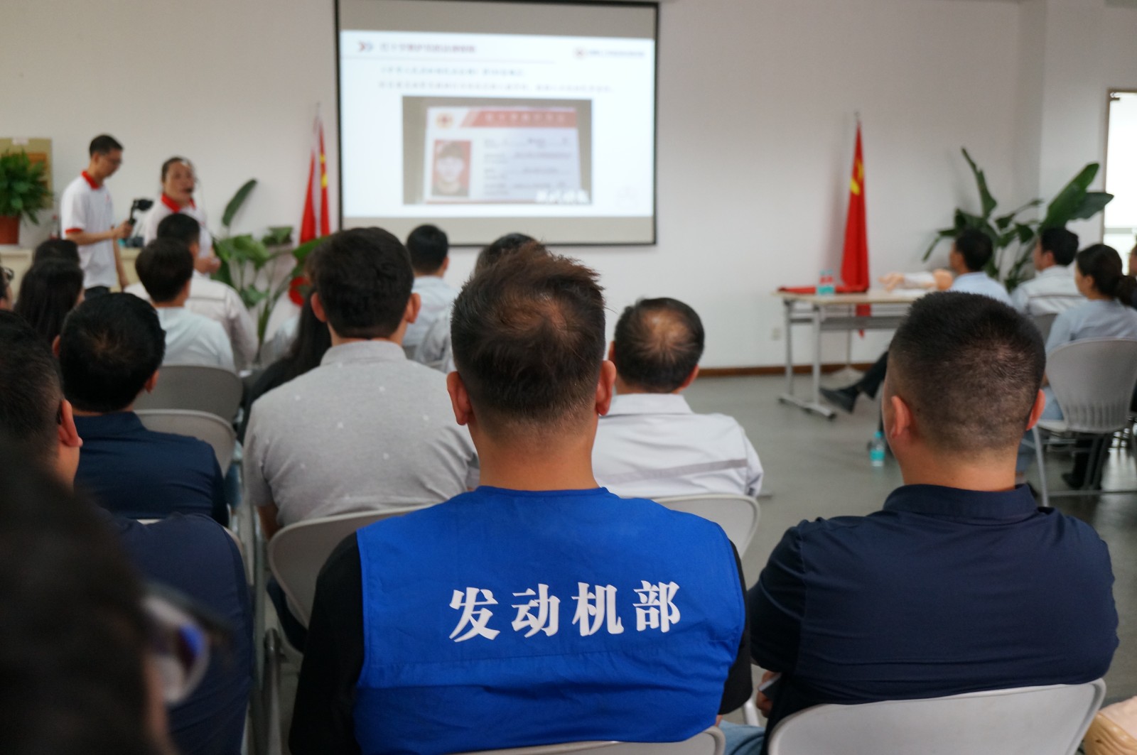 培训现场,救护培训老师以近年来发生在身边的真人真事为案例,向学员强调了应急救护“黄金四分钟”的重要性,讲解了心肺复苏术、AED使用、气道异物梗阻等应急救护知识。同时,有针对性地讲授了常见急症的早期识别和紧急应对措施,并利用模拟人演示操作步骤,提示注意事项。