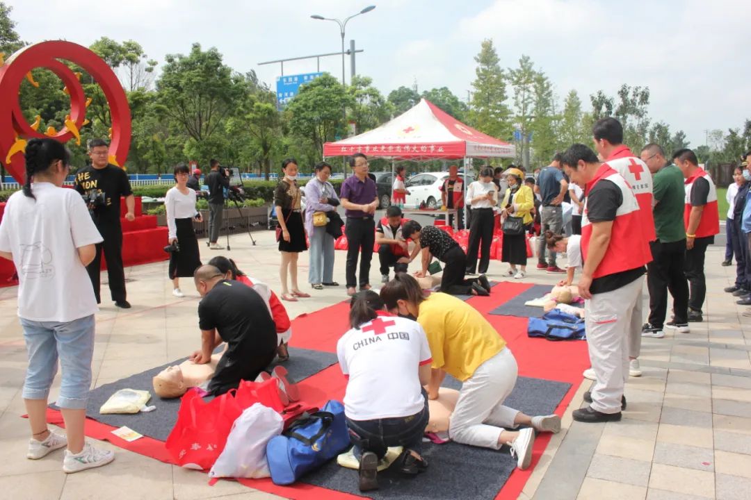 在第22个“世界急救日”来临之际,县红十字会水榭阳光、响水网以及红十字医院等志愿服务队的志愿者们齐聚水榭阳光博爱家园广场,通过急救知识讲解、心肺复苏操练与PK、发放宣传手册、义诊等方式,为市民送上“健康知识大餐”,提升市民的自救互救能力,使他们能够在突发意外伤害现场挽救生命和降低伤害程度。
