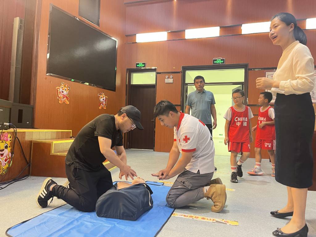 5月31日,亭湖区教育局、区红十字会“救在身边·校园守护”——应急救护培训进校园活动走进盐城环保科技城实验学校开展培训。