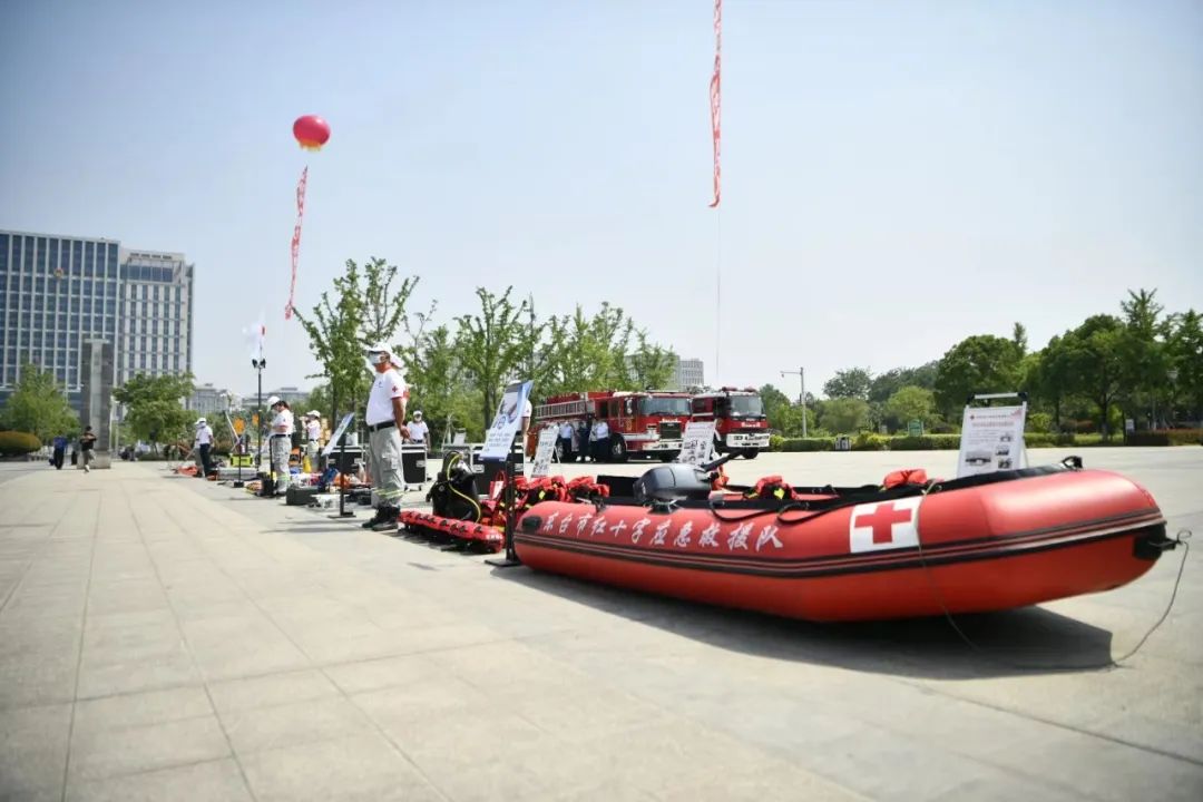红十字救援队展示了部分专业救援设备并现场进行了操作演示,重点展示了搜救犬、空中救援、水上救援、绳索救援、地震救援、应急通信、应急救护等救援装备。市领导参观救援队装备,救援队党支部书记崔凯向参观的各部门、单位代表详细介绍了装备分类同时进行了无人机水上救援以及气动抛绳枪演示。启动仪式现场我队进行了展板展览、发放急救宣传手册、救援救护示范及有奖问答等互动环节,详细普及心肺复苏、AED的使用、成人及婴儿的呼吸道异物梗阻急救手法。让市民在实践中对安全生产的理解更加深刻,现场多家企业邀请我队前往企业为员工们普及急救知识。