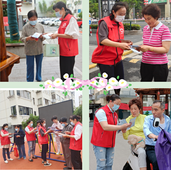 志愿者给市民发放市红会急救、防灾宣传折页。