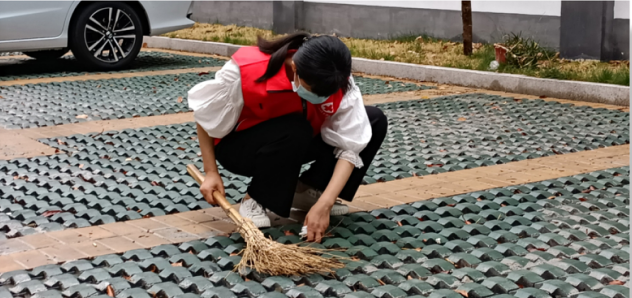 活动中,志愿者们人人动手,积极参与环境卫生整洁工作。