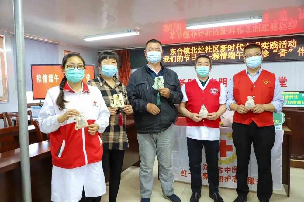 5月31日,红十字中医院红十字养老照护志愿者服务队,携手北灶社区为老人开展 粽情端午义诊"香"伴主题活动。现场活动精彩纷呈,义诊由眼科专家谢律主任团队给老人带来眼保健知识,测量血压,提供问诊咨询服务,控油控盐以及疫情防控、健康知识宣传。