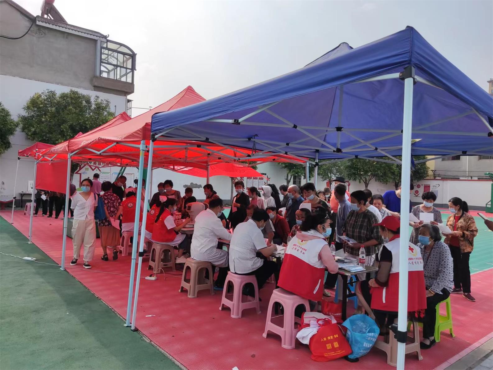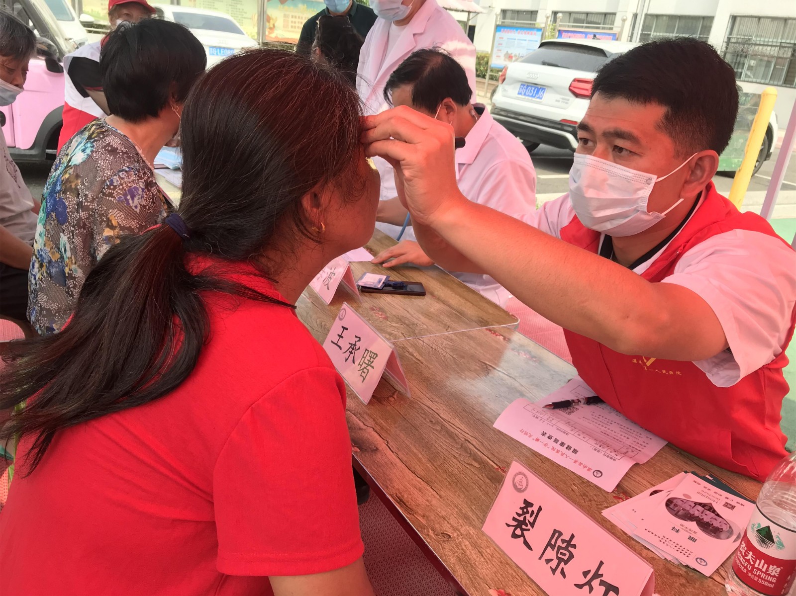 照顾到社区居民需要空腹检查血糖,志愿者们集体早起,乘着微凉的晨风,忙碌地准备相关仪器和物品,在七点半正式开始义诊。红十字志愿者们维持现场秩序,有条不紊的对来检查的社区群众进行信息登记、队伍排列。医护志愿者们有序地为社区居民检查视力,检测血糖、血压,眼压等,并由专业医生为检查过的群众进行分析研判,个性问诊等。义诊活动中,红十字会还宣传常态化疫情防控知识,并贴心的为现场居民分发口罩。社区群众纷纷表示,在炎热的夏天,红十字会和第一人民医院通过这样义诊活动传递着党和政府对群众健康的关怀,居民在家门口就可以享受到免费的医疗义诊服务,深受欢迎和好评,也产生了较好的社会效应。