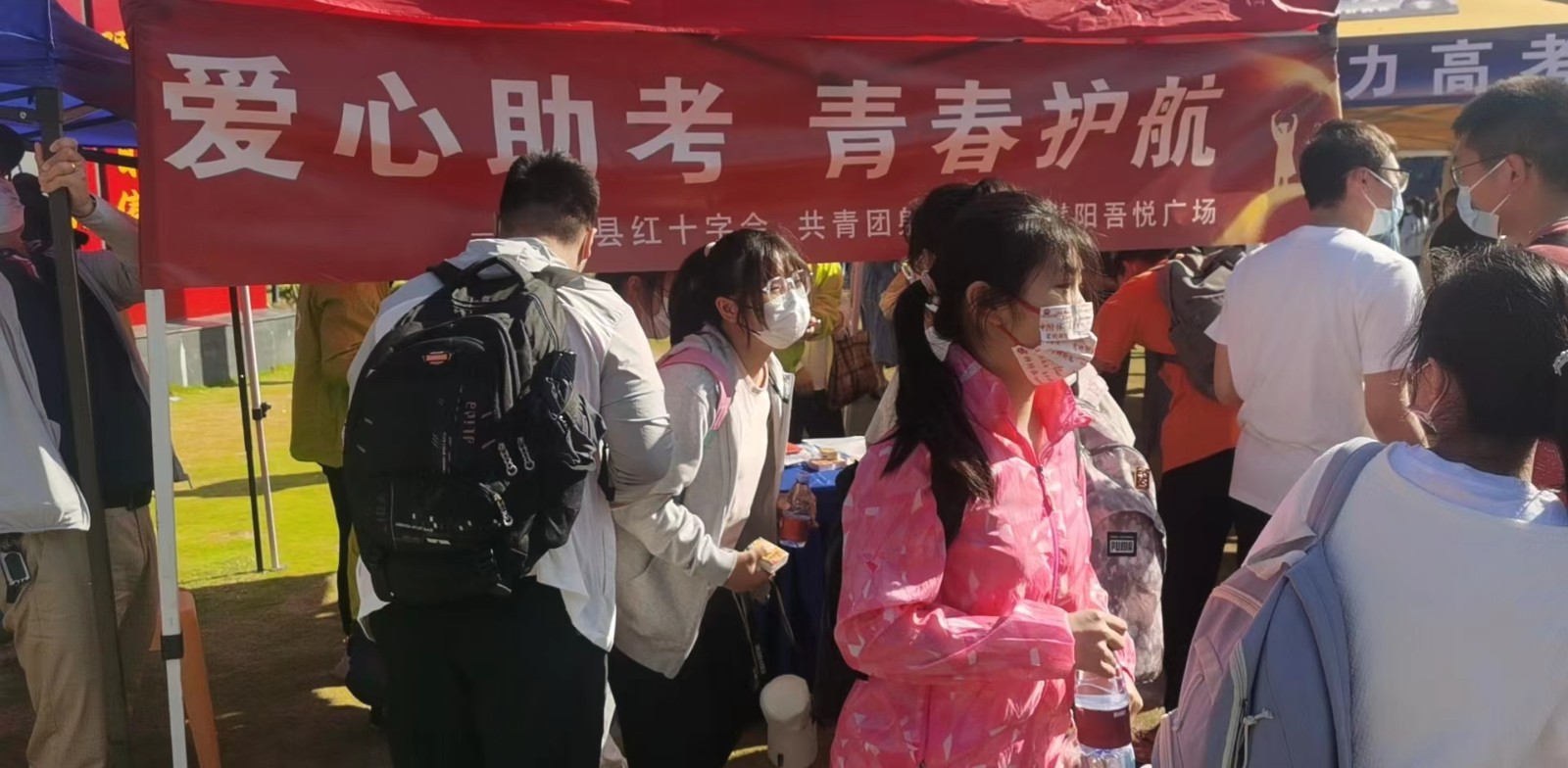 又是一年高考季,为保障广大考生生命安全和身体健康,确保高考安全顺利进行,2022年6月7日上午,射阳县红十字会会同共青团射阳县委、射阳吾悦在江苏省射阳中学、射阳县第二中学等高考考点开展“爱心助考,青春护航”活动。
