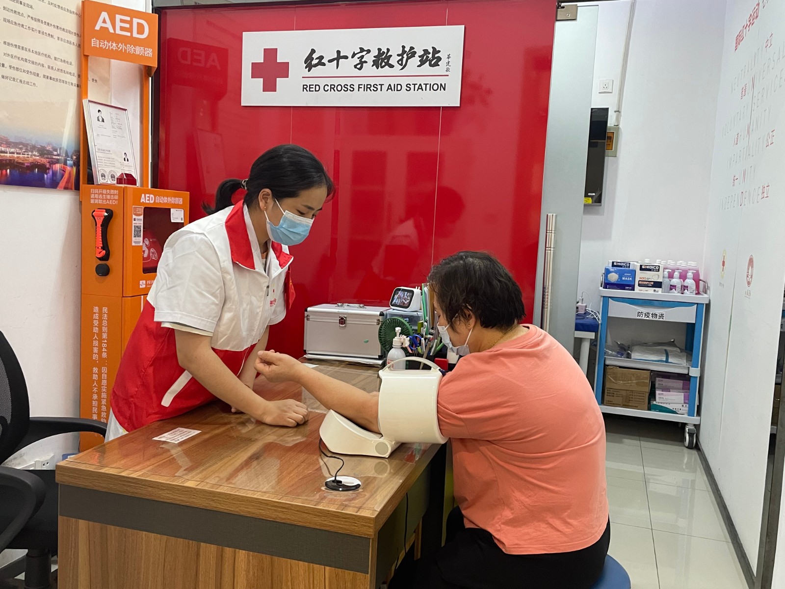 在景区“红马甲”们负责现场秩序的维护、游客疑问解答、现场紧急情况的处置之余,通过发放宣传资料、现场讲解、为游客量血压、测量体温、提供防疫知识、急救要领等咨询服务,营造了良好的宣传氛围,用实际行动,传播红十字正能量。