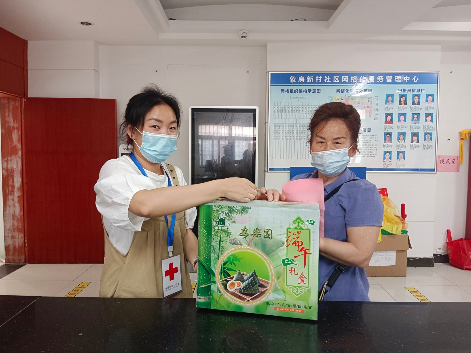 小朋友们与红十字志愿者一起慰问辖区鳏寡孤独老人,给他们送去节日的慰问和祝福,送上亲手包的粽子,让他们感受端午节的民俗文化魅力和社区大家庭浓浓的关怀。