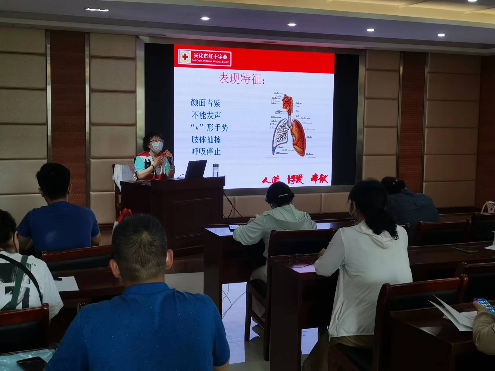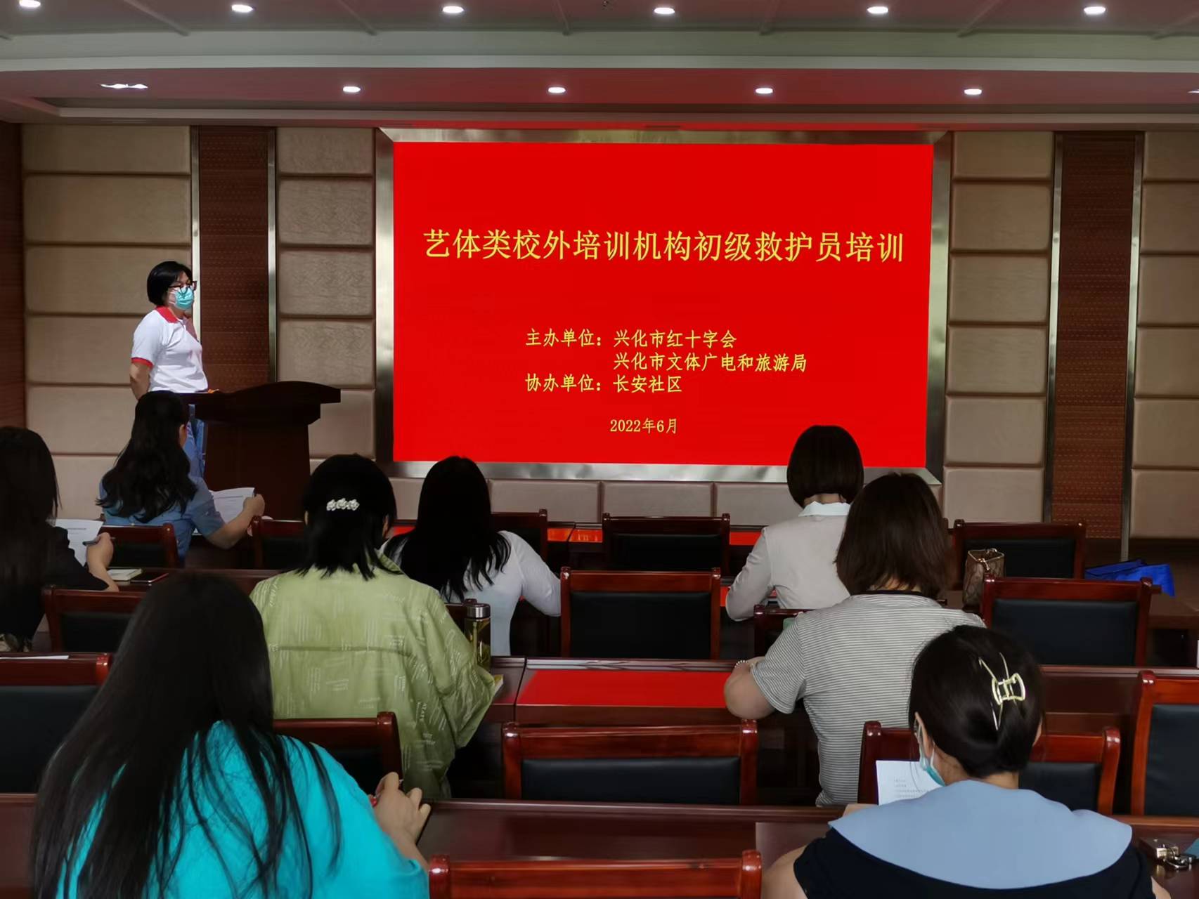 为普及应急救护知识,进一步提高我市艺体类校外培训机构工作人员应对突发情况的救援能力,兴化市红十字会联合市文体广旅局于6月9日和10日在长安社区开展初级救护员培训班。