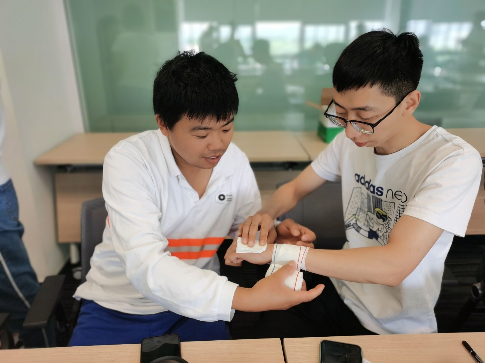 培训由市红十字会应急救护培训师资许坚勇主讲,包括心肺复苏、海姆立克急救法、创伤救护等内容。培训后全部通过考核,获得救护员证书。