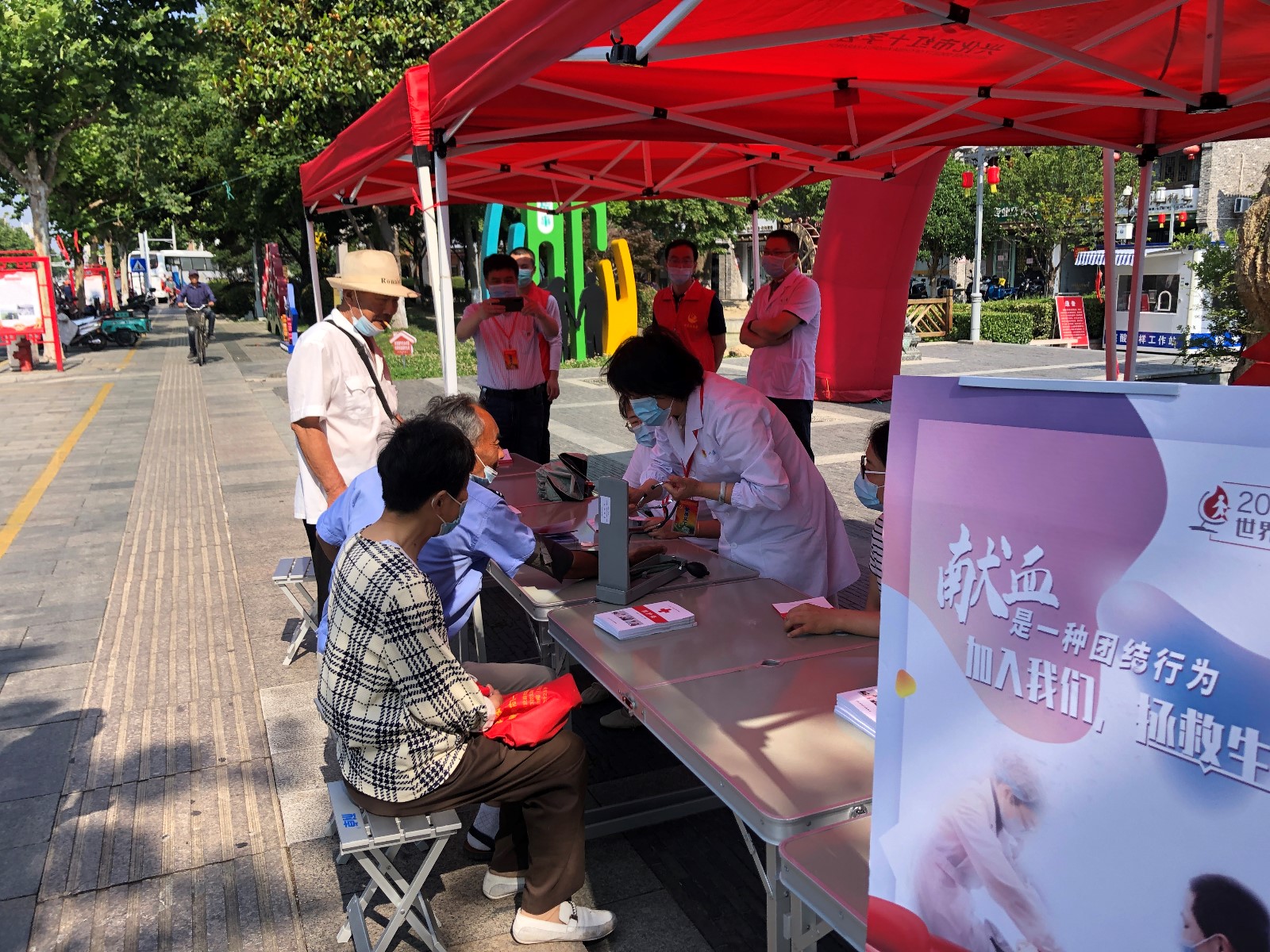 2022年6月14日是第19个“世界献血者日”,今年的主题是:“献血是一种团结行为。加入我们,拯救生命”。为营造浓厚无偿献血宣传月活动氛围,致敬无私奉献的“热血英雄”,兴化市红十字会联合市人医中心血站在八字桥广场开展主题宣传活动。