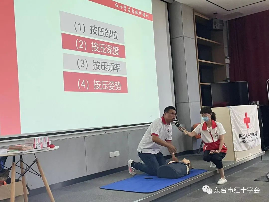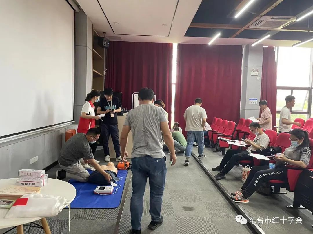 东台市红十字会为增强广大企业员工自救互救技能,提高企业应对突发事件的能力,6月6日在领胜城科技(江苏)有限公司举行红十字应急救护培训进企业活动。