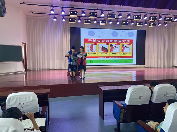活动中,孙永霞分两个阶段依次进行。第一阶段主要介绍消防器材的正确使用方法,并结合实际对火灾特点、预防火灾的基本常识、火灾发生、发展、熄灭的基本规律和特点等方面知识进行讲解,传授了防范措施和如何对初期火灾进行扑救以及火场自救逃生方法等知识。第二阶段开展交通事故自救互救知识培训,着重讲解了学生过马路需注意的事项和骑自行上学要注意哪些安全事项。特别是现在随着共享单车的推广,骑乘自行车的同学越来越多,由此引发的交通事故也越来越多。孙永霞特别提醒学生:未满12周岁不可以独自骑自行车上下学。