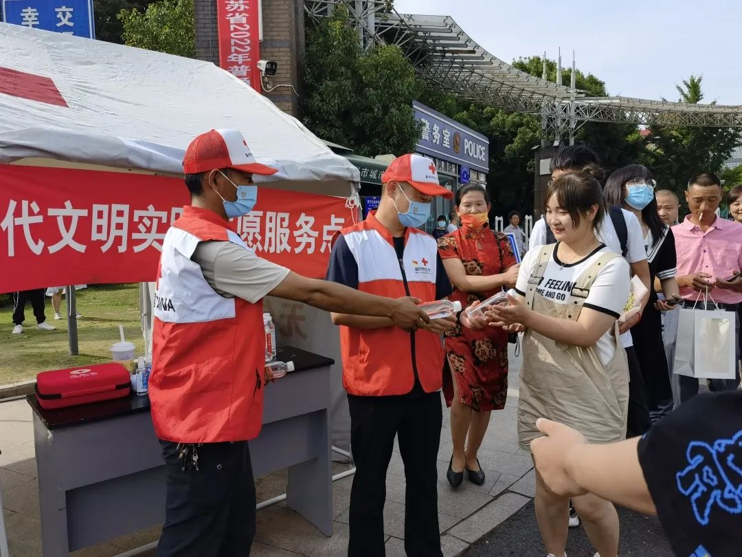 高考期间,宜兴市红十字会快速响应市文明办组织的“护航高考”行动,宜小红志愿者全心守护,在江苏省宜兴中学、江苏省宜兴第一中学、宜兴市第二高级中学、宜兴市阳羡高级中学4个高考考点外开展秩序维护、应急保障等服务,三天内共计59人次志愿者参与,服务时长达359小时。