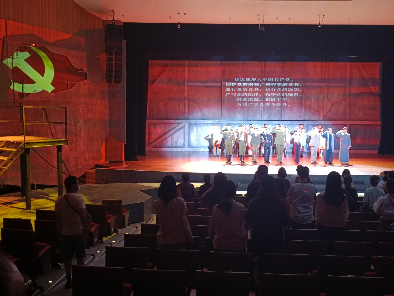 6月10日下午,市红十字会组织机关党员赴南京雨花剧院开展红色打卡——“沉浸式”党史学习教育观看话剧《代号1921》,该剧以红色内核和沉浸式艺术形式,让观众深切共情,零距离感受雨花英烈的豪情和勇气,向我们生动再现了那段波澜壮阔的奋斗史诗和英勇无畏的革命精神。