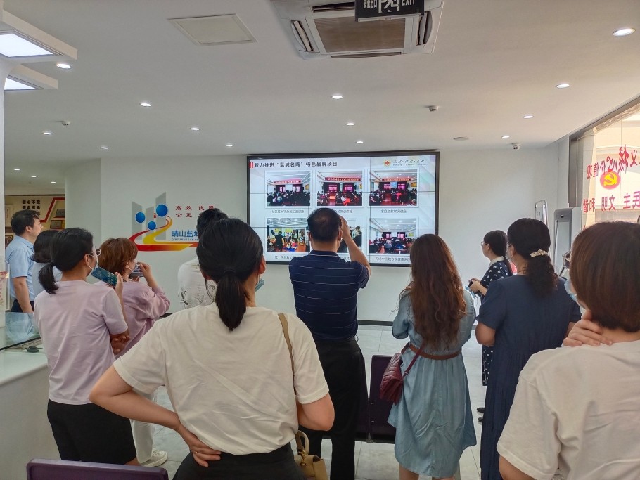 为贯彻落实博爱家园建设的工作部署,深化博爱家园建设,打造群众身边的红十字会。6月16日下午,江阴市红十字会党组书记、常务副会长张悦带领澄江街道、云亭街道、青阳镇、新桥镇等镇(街道)红十字会和博爱家园负责人,赴惠山区钱桥街道晴山蓝城社区和藕塘社区观摩学习博爱家园建设的先进经验。惠山区红十字会秘书长兼红十字服务科科长朱晓军陪同参观。