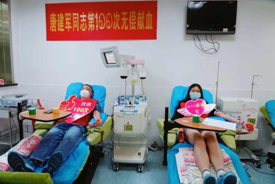唐建军自2002年开始捐献全血,在得知成分血对病患特别是血液病患者的临床冶疗更有效果后,开始坚持捐献成分血,20年的坚持,他迎来了自己的第100次献血。唐建军在献血的同时,积极参加无偿献血宣传活动,唐婧蕾在父亲的影响下,于2015年起就跟着爸爸参加服务队的无偿献血宣传活动,当刚刚高考结束年满十八周岁的她将完成人生中第一次无偿献血,这也是一个特殊的成人礼!