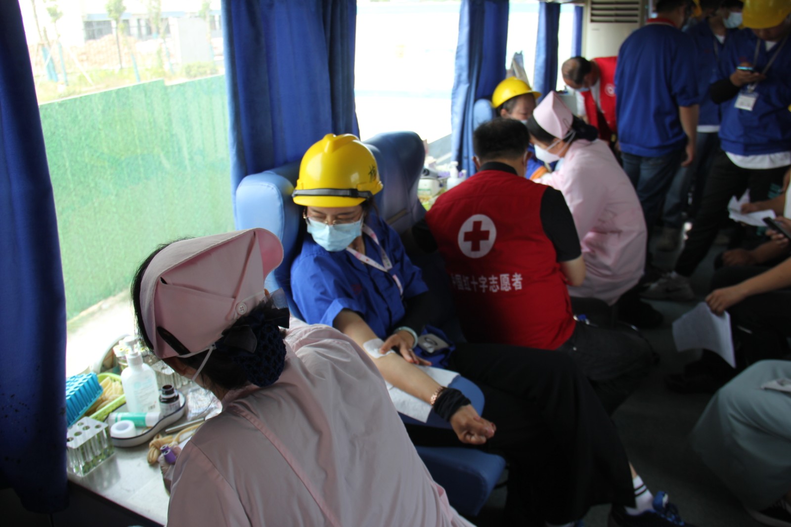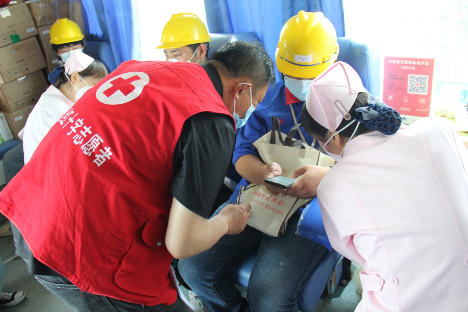 当天上午,采血车开进盐城弗迪电池有限公司,头戴黄色安全帽、身着蓝色工作服的企业员工们等候在门口准备献血。他们在医务人员和红十字志愿者的指导下秩序井然地进入扫码登记、身体检查、血液快检、捐献血液等流程,用热血向社会传递了企业温暖。